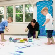 - Im Erdgeschoß können die Kinder nach Herzenslust die selbstgemachte, essbare Bio-Farben mischen, matschen, malen, Mama anmalen, mit Papa Fußspuren hinterlassen. Dazu gibt es einen Tisch mit selbst hergestellter Knete und unterschiedlichsten Knetwerkzeugen.