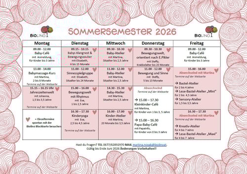 Spielgruppen, die im Stundenplan mit einem "Herz" gekennzeichnet sind, kannst du mit der Biolino Blockkarte besuchen.